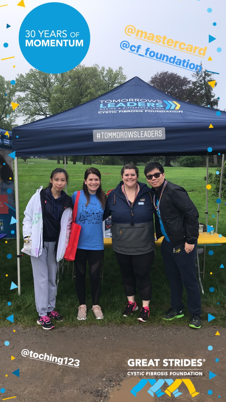 Since joining Tomorrow’s Leaders, I’ve partnered with Tommy to raise $3,000 for the annual Great Strides Walkathon, and coordinated a cross-organizational event featuring Nik Talbot, the first person with CF to summit Mount Everest. We’re actively planning our next fundraiser, a trivia night in NYC, so check back often for updates!